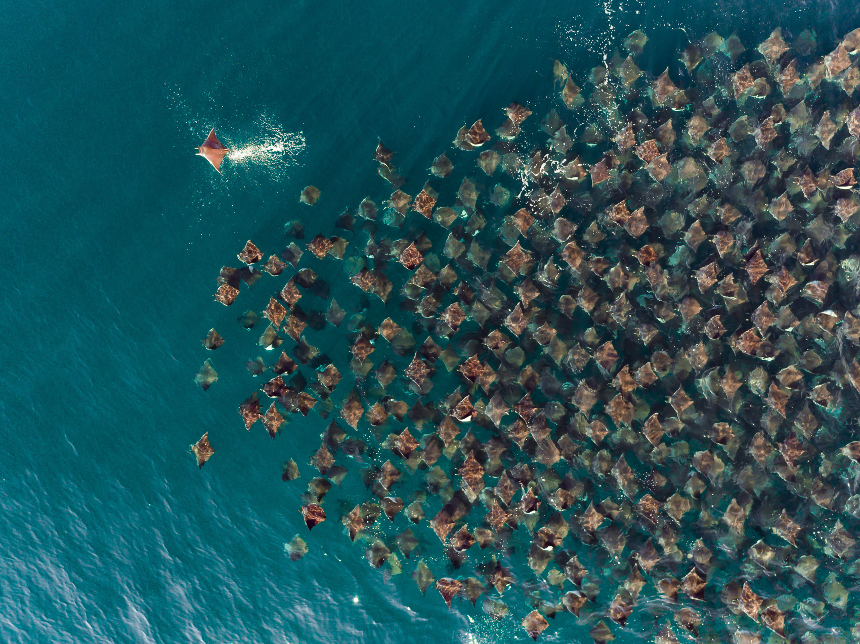 Cardumen de Mobula trasladándose hacia el sur del Pacífico por las orillas de Cabo Corrientes, Jalisco. #México